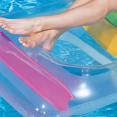Bardzo wygodny i praktyczny materac przyda się wszystkim miłośnikom zarówno wody jak i spędzania czasu na plaży. Materac może służyć zarówno jako klasyczny materac również do opalania jak i fotel do pływania. Dodatkowym atutem, który zapewni Ci wygodę i relaks są podłokietniki i dmuchane oparcie. Klasyczne białe elementy w połączeniu z tęczowymi elementami z pewnością przypadną Ci do gustu.