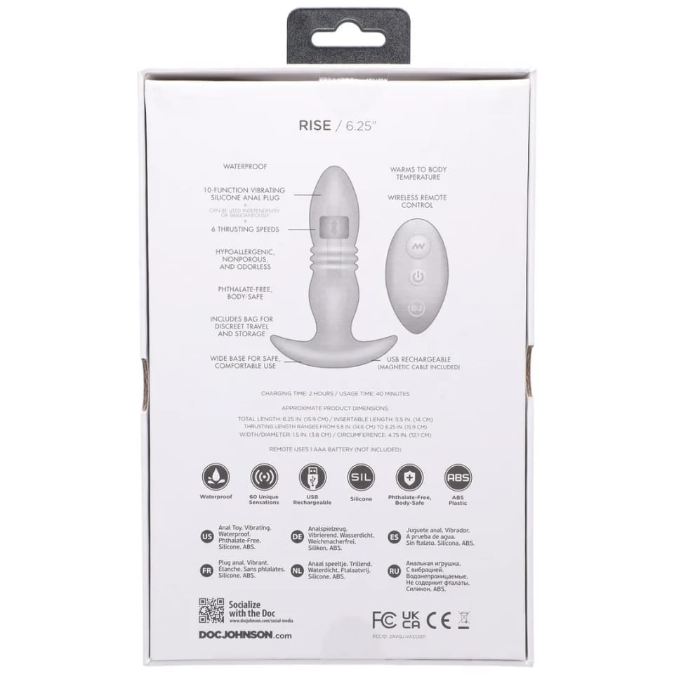 Doc Johnson A-Play Rise to zaawansowany model z linii wysokiej klasy urządzeń dedykowanych do komfortowej stymulacji. Produkt wyposażony jest w innowacyjny system zdalnego sterowania, umożliwiający obsługę zarowno bezpośrednio na urządzeniu, jak i za pomocą wygodnego pilota bezprzewodowego.