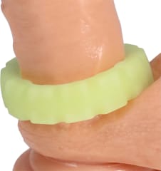 Doc Johnson The Tire to nowoczesny pierścień silikonowy, zaprojektowany z myślą o komforcie i funkcjonalności. Model wyrożnia się szerokimi, płaskimi bokami oraz charakterystyczną strukturą przypominającą bieżnik, ktora nadaje produktowi unikatowy wygląd i dodatkową powierzchnię kontaktową. Wersja The Tire została wykonana z wysokiej jakości silikonu, ktory cechuje się niezwykłą elastycznością, umożliwiając łatwe zakładanie i solidne dopasowanie. Dodatkowym atutem jest specjalny materiał, ktory świeci w ciemności, wprowadzając wyjątkową atmosferę podczas użytkowania.