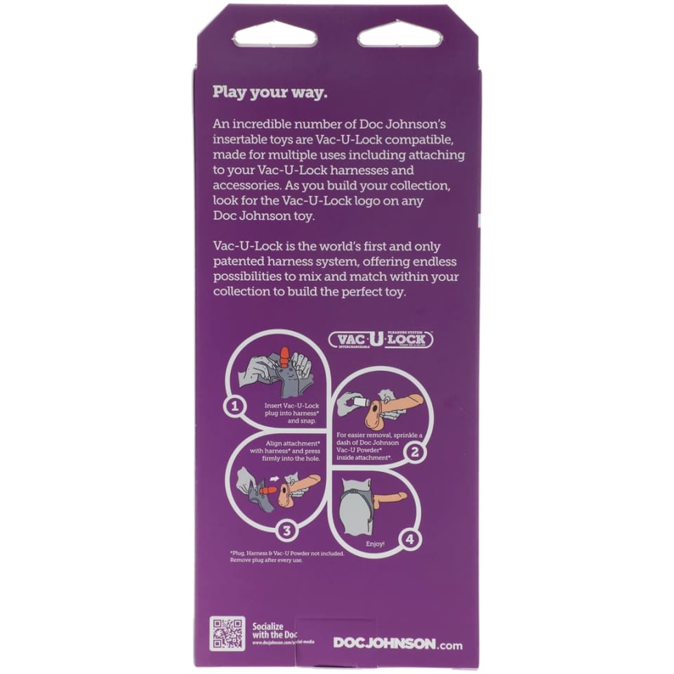 Model ten został precyzyjnie uformowany na podstawie rzeczywistych kształtow, co przekłada się na bardzo szczegołowy wygląd i wysoką jakość wykonania. Produkt posiada solidny system mocowania Vac-U-Lock, umożliwiający kompatybilność z szeroką gamą akcesoriow oraz uprzęży tej samej marki. Podwojna warstwa materiału – twardsza wewnętrzna i miękka zewnętrzna – zapewnia trwałość oraz odpowiednią elastyczność, a jednocześnie gwarantuje łatwe utrzymanie czystości.