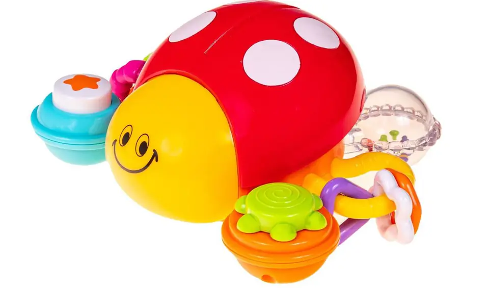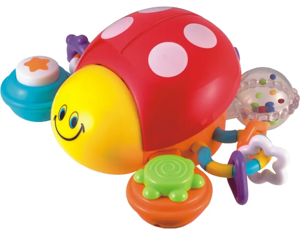 Dogonię cię biedroneczko! Takie wyzwanie może rzucić tylko ruchliwy maluch. Kolorowa biedronka Smily Play to wesoła zabawka dla dzieciaków w wieku powyżej 6 miesiąca życia. Biedroneczka ucieka, kiedy dziecko naciśnie na jej grzbiet specjalny mechanizm wprawia ją w ruch. Dodatkowo zabawka ma grzechoczące elementy, a przycisk funkcyjny uruchamia radosne melodie. Maluch, próbując nadążyć za biedroneczką, doskonali swoje umiejętności raczkowania i chodzenia. Każda z 6 nóg biedronki posiada inną zabawkę, dzięki czemu rozwija także zdolności manualne, słuchowe i poznawcze dziecka.