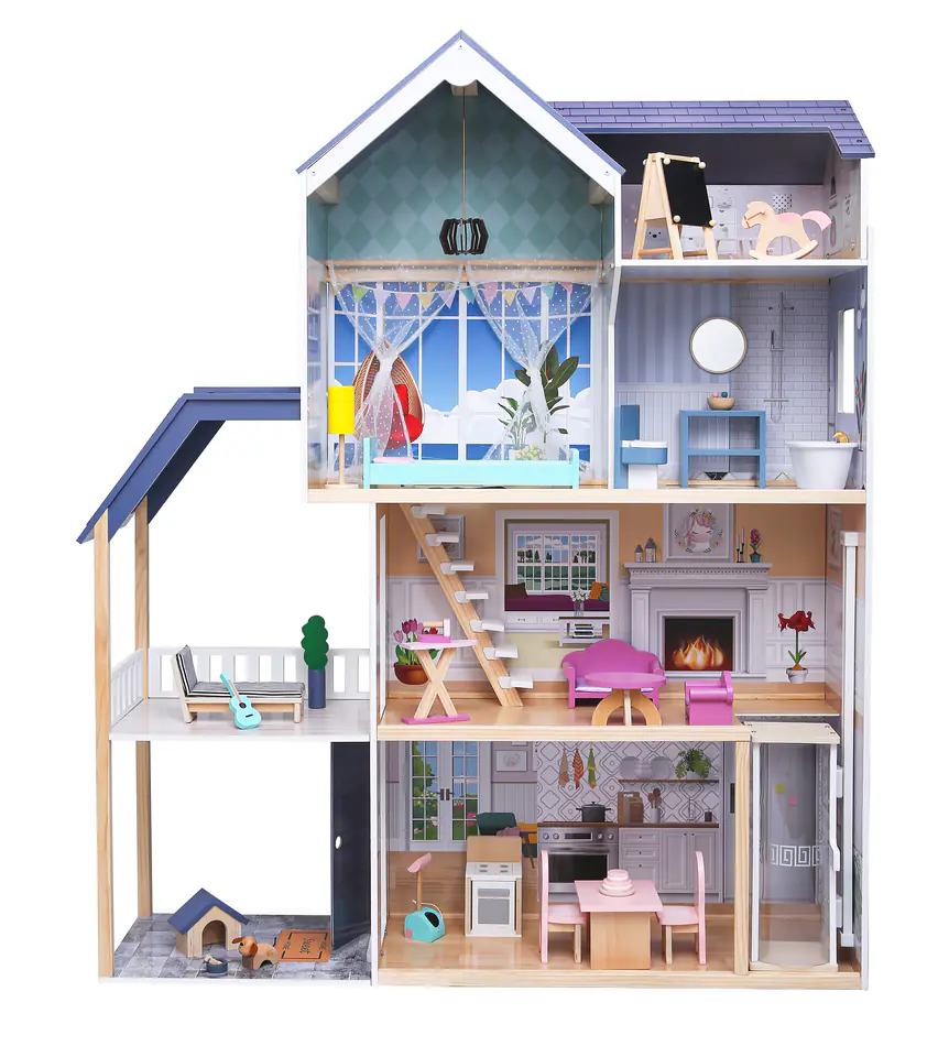 Wystarczy chwila zabawy, aby dziecko go pokochało. Cały domek ma 4 niezależne poziomy, w których znajduje się łącznie 7 pomieszczeń, w tym taras oraz zadaszone wejście. Każde pomieszczenie wykończono w innej stylistyce, dopasowując wystrój oraz meble do charakteru i przeznaczenia danego pokoju. Nic jednak nie stoi na przeszkodzie, aby Twoje dziecko pobawiło się w projektanta wnętrz i urządziło je po swojemu.