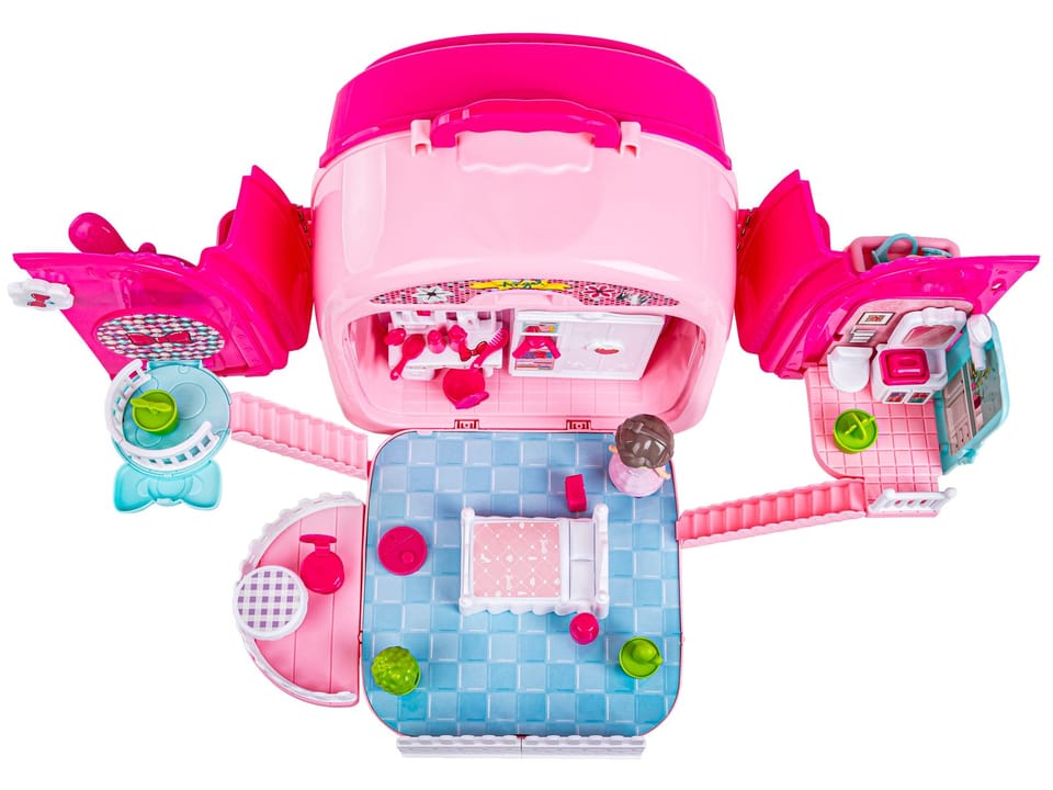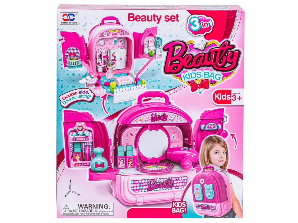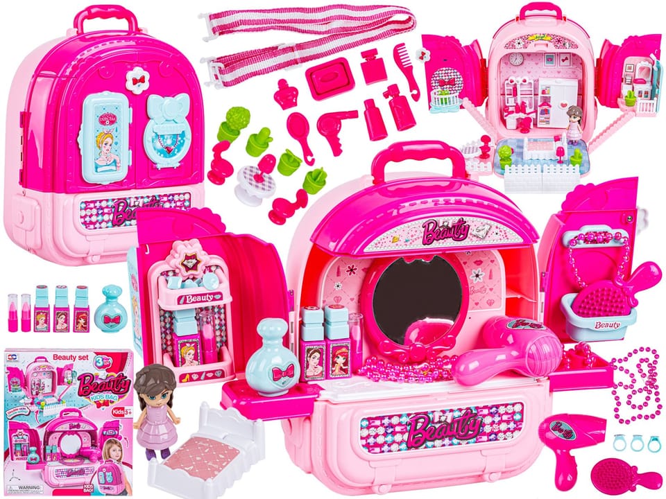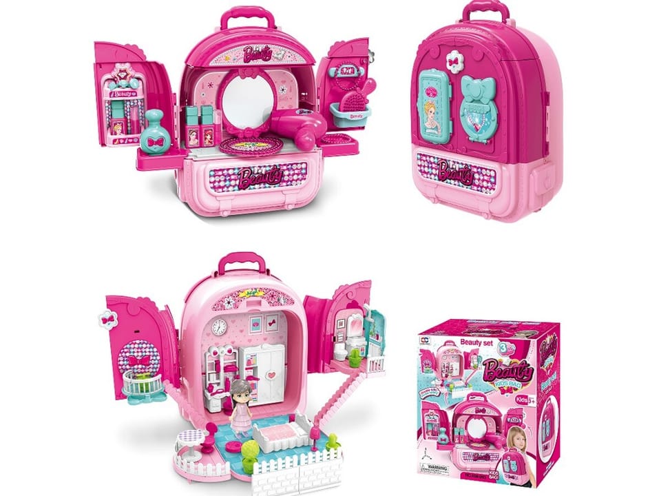 Domek Dla Lalek Toaletka W Walizce Plecak Zestaw 3w1 + Akcesoria