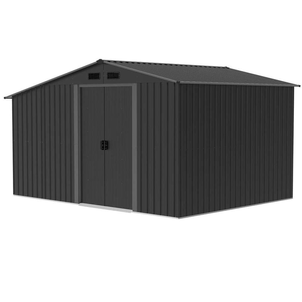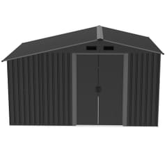 Solidna metalowa konstrukcja i otwory na kłódkę zabezpieczą przed włamaniem, zapewniając bezpieczne miejsce dla Twoich narzędzi, kosiarki i innych cennych przedmiotów.
