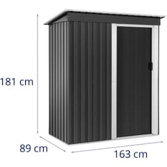 Kod producenta: 10250776W metalowym domku narzędziowym marki Uniprodo można bezpiecznie przechować sprzęt ogrodniczy, zabawki i narzędzia. Z wymiarami 163 x 181 x 89 cm szopa ogrodowa na narzędzia zapewnia wystarczająco dużo miejsca do przechowywania nawet większych urządzeń. Drzwi 63 x 163 cm umożliwiają wygodny dostęp i można je szybko i bezpiecznie zamknąć na kłódkę. Odporna na warunki atmosferyczne szafa ogrodowa ma skośny dach i oferuje optymalne wykorzystanie przestrzeni. W przypadku deszczu taki dach zapewnia doskonałe odprowadzanie wody. Domek ogrodowy na narzędzia nie ma spodu, dzięki czemu wilgoć przenika bezpośrednio do gruntu. Czyszczenie i konserwacja są ograniczone do minimum. Montaż szopy ogrodowej jest nieskomplikowany i poradzą sobie z nim nawet laicy. Metalowy domek imponuje długą żywotnością i został wykonany jest z ocynkowanej stali. Jest ona szczególnie odporna na korozję, a jednocześnie wyróżnia się niskimi kosztami utrzymania i dobrą możliwością recyklingu po zakończeniu użytkowania.Cechy produktu: