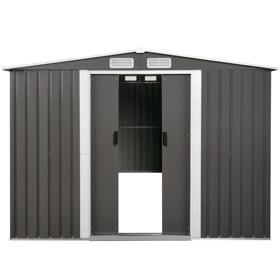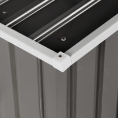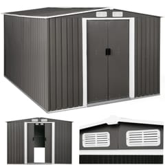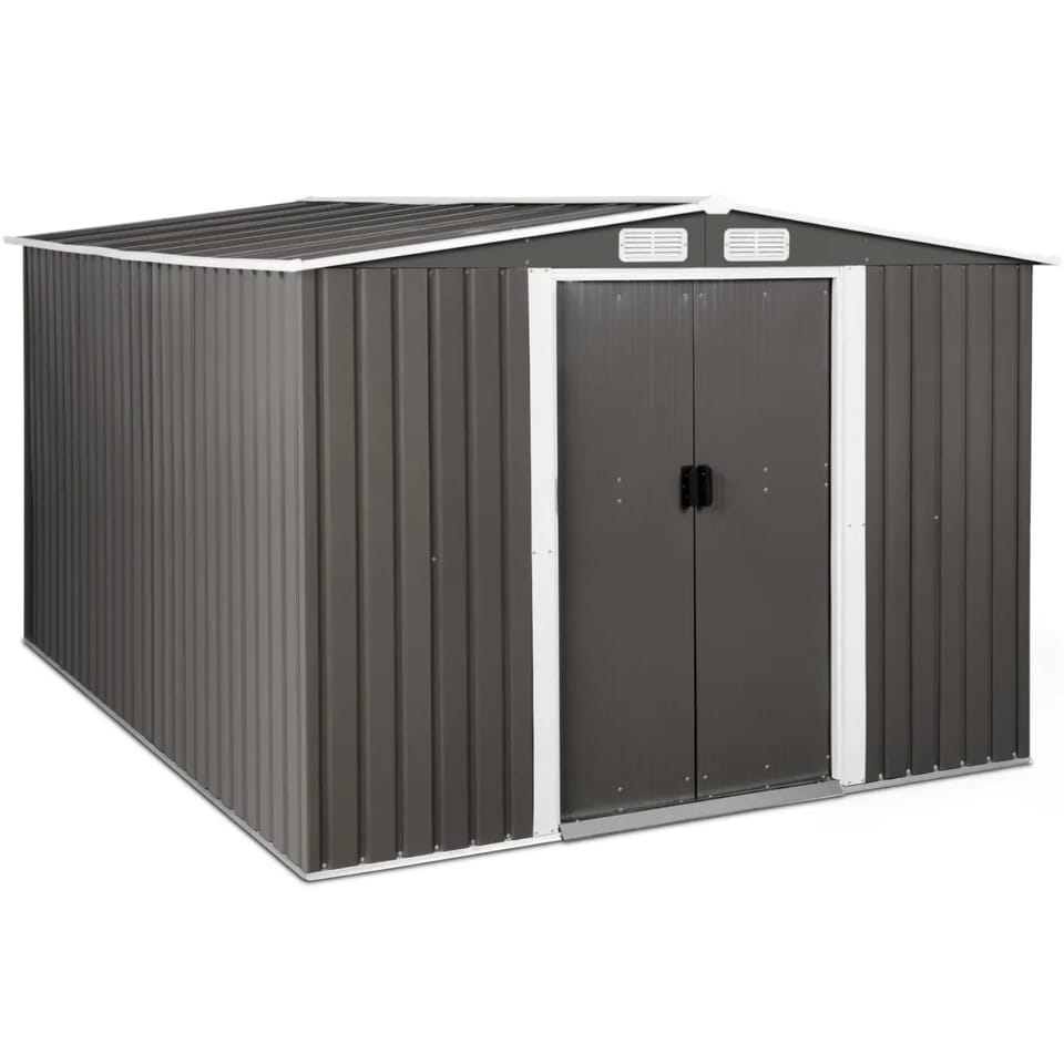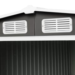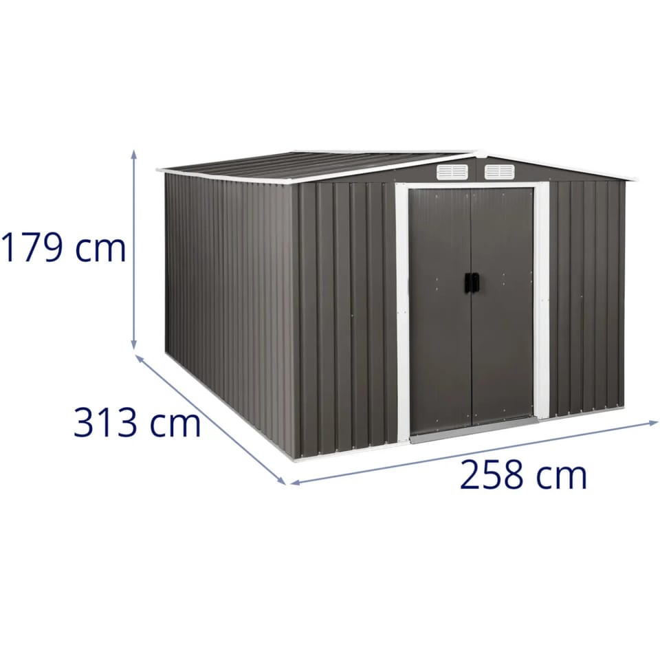Kod producenta: 10250778Domek narzędziowy marki Uniprodo pozwala bezpiecznie przechować sprzęt ogrodniczy, zabawki i narzędzia. Wymiary 313 x 179 x 258 cm zapewniają wystarczająco dużo miejsca do przechowywania nawet mebli czy rowerów. Drzwi 96 x 154 cm umożliwiają wygodny dostęp, można je szybko i bezpiecznie zamknąć na kłódkę (brak w zestawie). Odporna na warunki atmosferyczne szopka ma dwuspadowy dach, którego szczyt jest wzmocniony i zapewnia optymalne wykorzystanie przestrzeni. Dach zapewnia doskonałe odprowadzanie wody w deszczu. Domek nie ma spodu, dzięki czemu wilgoć przenika bezpośrednio do gruntu. Otwory wentylacyjne gwarantują optymalną cyrkulację powietrza i zapobiegają gromadzeniu się wilgoci, a nawet pleśni. Czyszczenie i konserwacja są ograniczone do minimum. Montaż szopy jest nieskomplikowany. Domek imponuje długą żywotnością. Wykonany został z ocynkowanej stali. Jest ona szczególnie odporna na korozję, a jednocześnie wyróżnia się niskimi kosztami utrzymania i dobrą możliwością recyklingu po zakończeniu użytkowania.Cechy produktu: