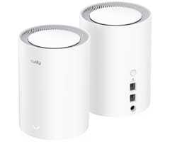 Cudy M3000 to dwupak Mesh Wi-Fi 6 AX3000 z portem 2.5G i prędkością do 3 Gb/s – 2402 Mb/s w 5 GHz oraz 574 Mb/s w 2,4 GHz – z OFDMA, MU-MIMO i WPA3 dla płynnego streamingu i gier. Dwurdzeniowy procesor 1,3 GHz, backhaul przewodowy lub bezprzewodowy, wbudowane VPN WireGuard/OpenVPN/IPsec/ZeroTier i aplikacja Cudy ułatwiają rozbudowę i zarządzanie siecią.