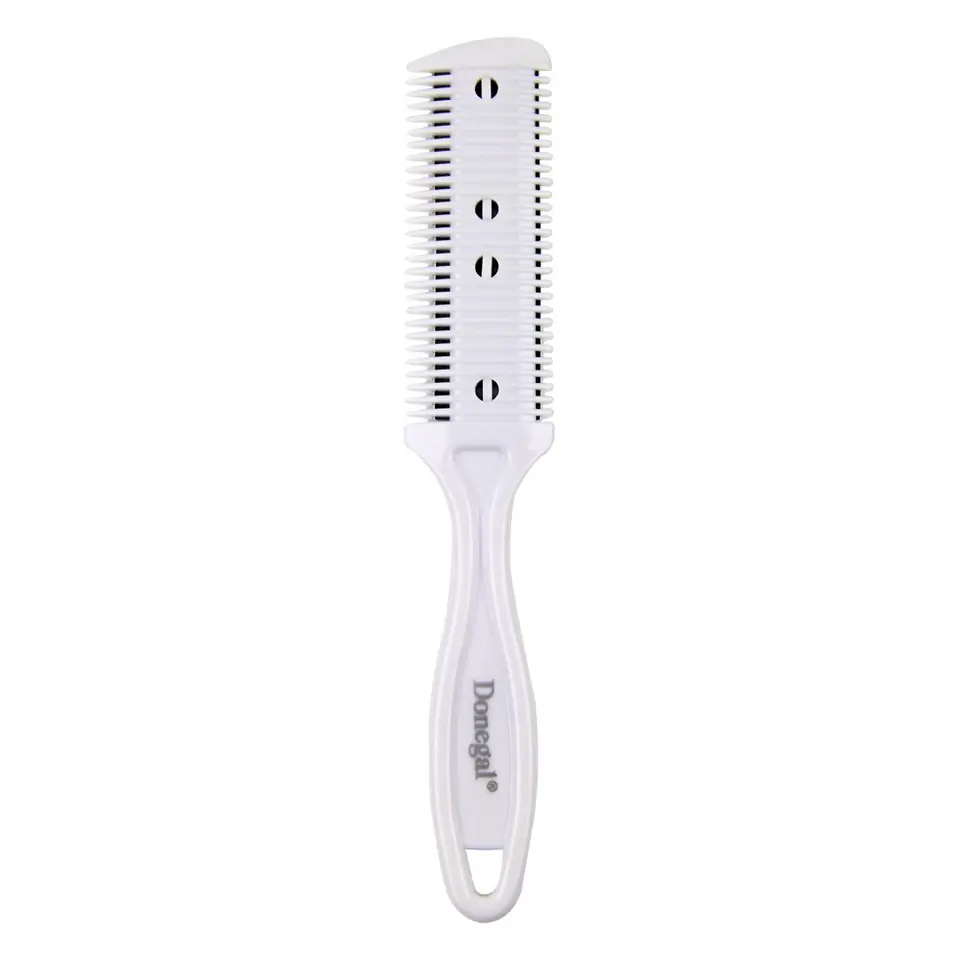 Skutecznie cieniuje włosy, dzięki specjalnie wykonanemu i dobrze umocowanemu ostrzu, zakończonym wytrzymałą żyletką Wykonany z mocnego tworzywa i metalu Zaleca się używanie do włosów suchych, czystych i rozczesanych