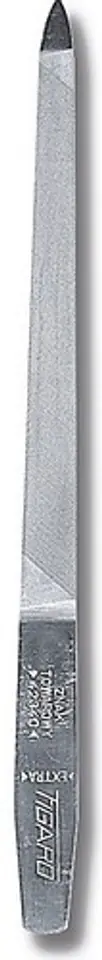 Dwustronny metalowy pilnik do paznokci przeznaczony do pielęgnacji paznokci naturalnych.. Wymiary pilnika: długość 18,5 cm.