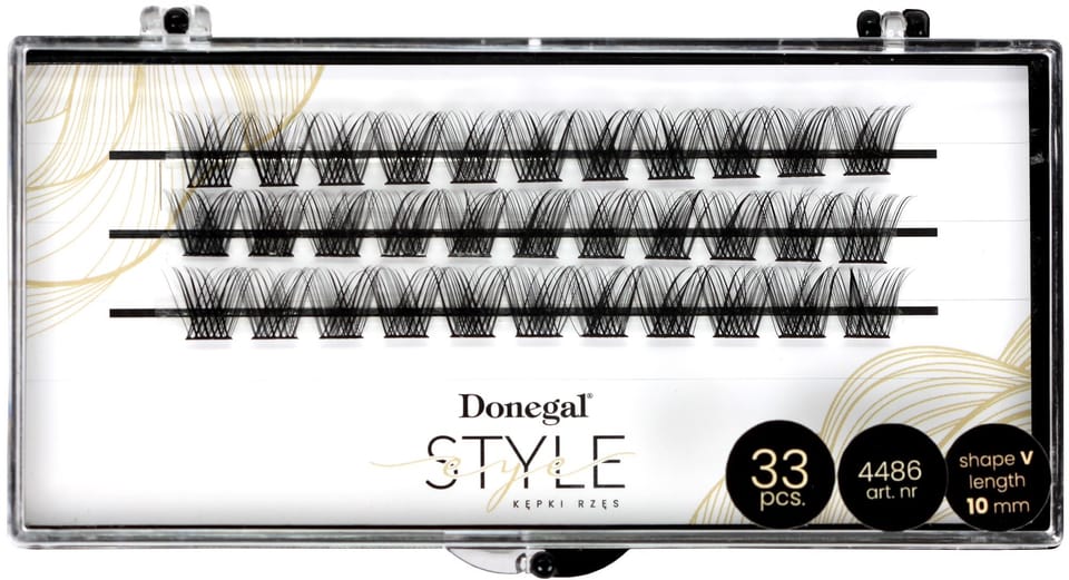 Kępki sztucznych rzęs Donegal Eye Style w kształcie litery V to idealne rozwiązanie dla osób poszukujących sposobu na naturalne, ale jednocześnie spektakularne podkreślenie oczu. Dzięki unikalnej formie kępek w kształcie litery V rzęsy zyskują na objętości i długości, tworząc elegancki efekt wachlarza, który zachwyca przy każdym spojrzeniu. W opakowaniu znajduje się 33 kępki o długości 10 mm, które pozwalają uzyskać efekt dopasowany do Twojego stylu. Aplikacja jest prosta i wygodna, a lekkie kępki nie obciążają powiek, zapewniając komfort przez cały dzień. Zestaw nie zawiera kleju.