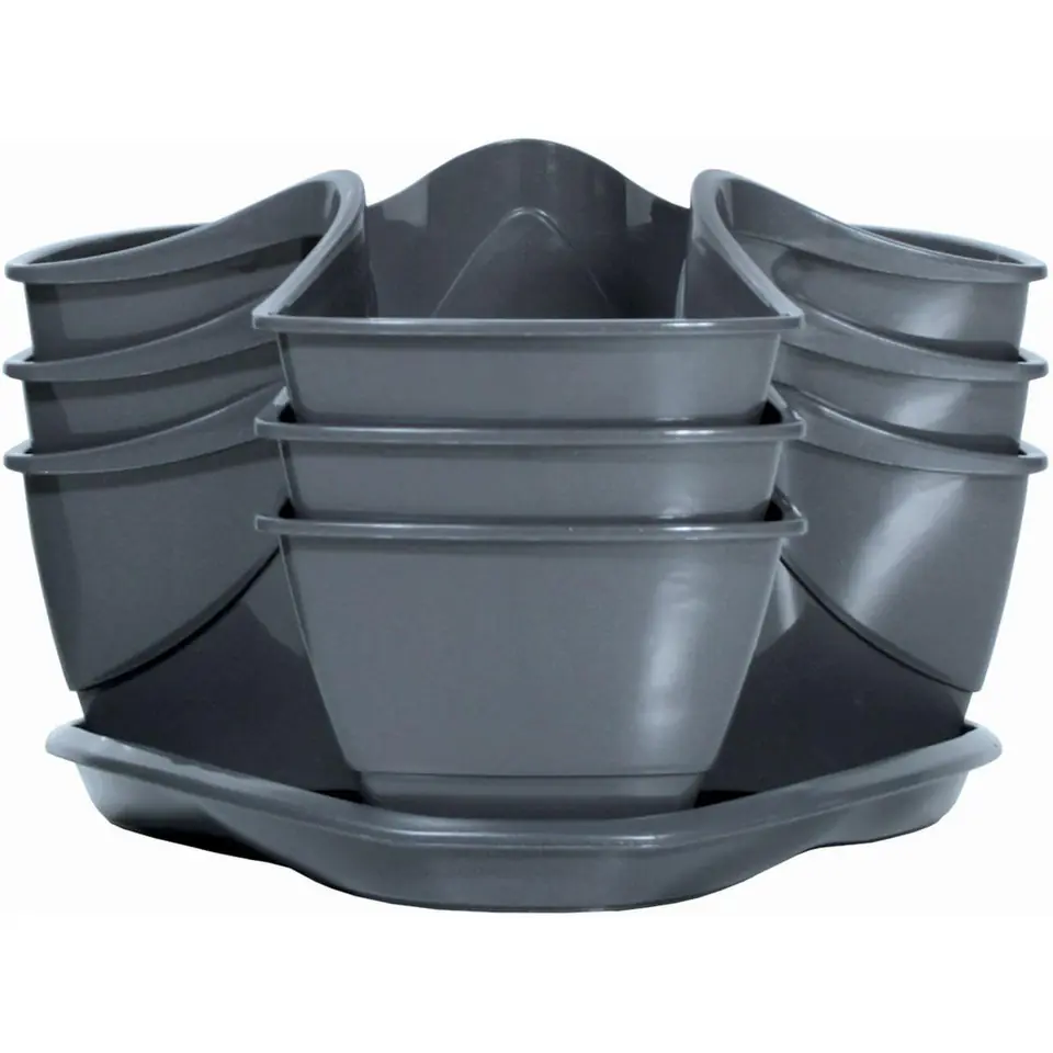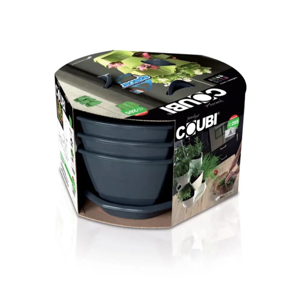 Zestaw zawiera- Doniczka potrójna do ziół Coubi Herbal antracyt