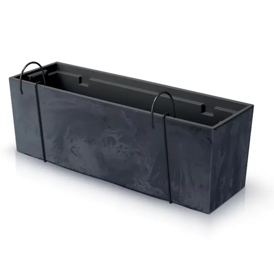 Dekoracyjna skrzynka balkonowa o prostych, eleganckich kształtach i powierzchni imitującej produkt wykonany z betonu. Będzie mocnym akcentem przy aranżacji przestrzeni balkonu. Wyposażona w haki umożliwiające powieszenie jej na poręczy. W zestawie z wkładem.