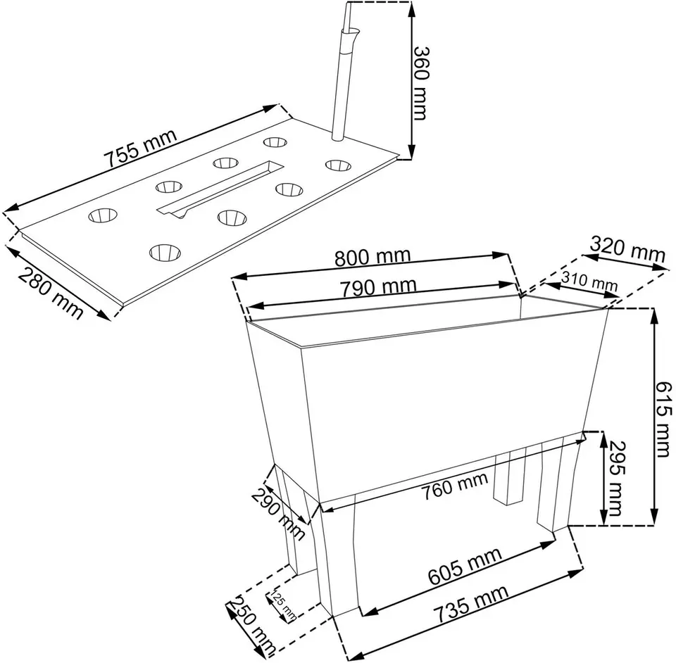 - Wymiary: 800 x 330 x 620 mm (długość/szerokość/wysokość)