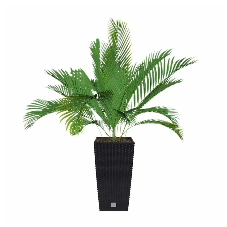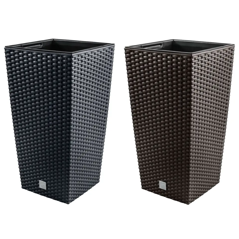 Wysoka doniczka Rato Square o fakturze wiernie imitującej plecionkę z naturalnego rattanu, w klasycznej, czystej formie, pozwala kreować piękne unikatowe wnętrza i bez ograniczeń aranżować przestrzeń wokół domu, godząc różne style i upodobania.