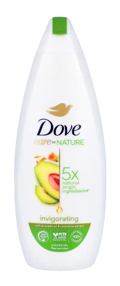Formuła zawiera w 100% delikatne składniki myjące pochodzenia naturalnego. Ponadto formuła żelu Dove Care by Nature jest w 92% naturalnego pochodzenia a 100% składników nawilżających jest pochodzenia roślinnego. Nowe żele Dove to połączenie pielęgnacji i natury. Dove Care by Nature nie zawiera siarczanów SLES/SLS i jest odpowiedni dla wszystkich rodzajów skóry. Co więcej, formuła jest w 92% biodegradowalna* i jest zapakowana w nadającą się do recyklingu butelkę, wykonaną w 100% z przetworzonego plastiku.*92% składników rozkłada się do dwutlenku węgla, wody i minerałów(metody testowe OECD 301, 302, 310).