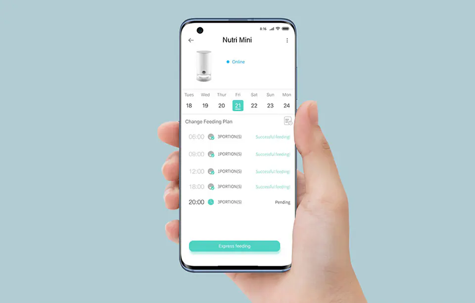 Petoneer Nutri Mini to inteligentny dozownik karmy przeznaczony dla kotów i małych psów. Został zaprojektowany w taki sposób, aby przechowywana w nim karma długo pozostawała świeża. Ustalaj harmonogramy karmienia lub podawaj pupilom jedzenie zdalnie - za pomocą aplikacji. Pojemność 2,6 l to wystarczająco dużo, aby zapewnić zwierzakowi posiłki nawet na 2 tygodnie. Możesz więc bez obaw wyjechać na krótką wycieczkę, zostać dłużej w pracy lub iść na całonocną imprezę - Twojemu ulubieńcowi nie zabraknie pożywienia!