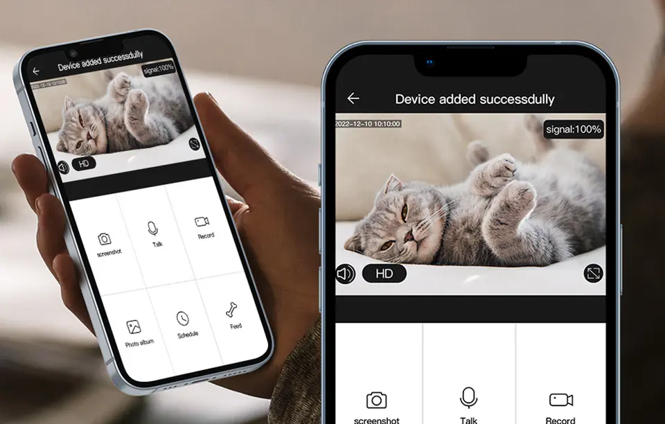 Wbudowana kamera zapewnia rozdzielczość na poziomie 720p, a jej zasięg nagrywania sięga 115°. Możesz jej użyć do tworzenia zdjęć i filmów, aby podzielić się ulubionymi chwilami pupila z rodziną i przyjaciółmi.
