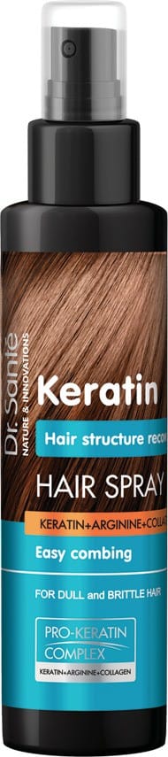 Seria Keratin od Dr. Sante oparta jest na specjalnym kompleksie Pro-Keratin, który zawiera keratynę, argininę i kolagen, a jego celem jest odbudowa włosów na całej długości. Wszyscy wiemy, że keratyna jest głównym „budulcem” włosów. Jeśli włosy tracą naturalną keratynę, stają się suche, łamliwe i porowate. Produkty zawierające keratynę, docierając do uszkodzonych miejsc, działają od wewnątrz. Arginina jest aminokwasem, który dodaje włosom siły i energii. Kolagen tworzy niewidzialny film, wzmacnia włosy i chroni przed działaniem wysokiej temperatury.