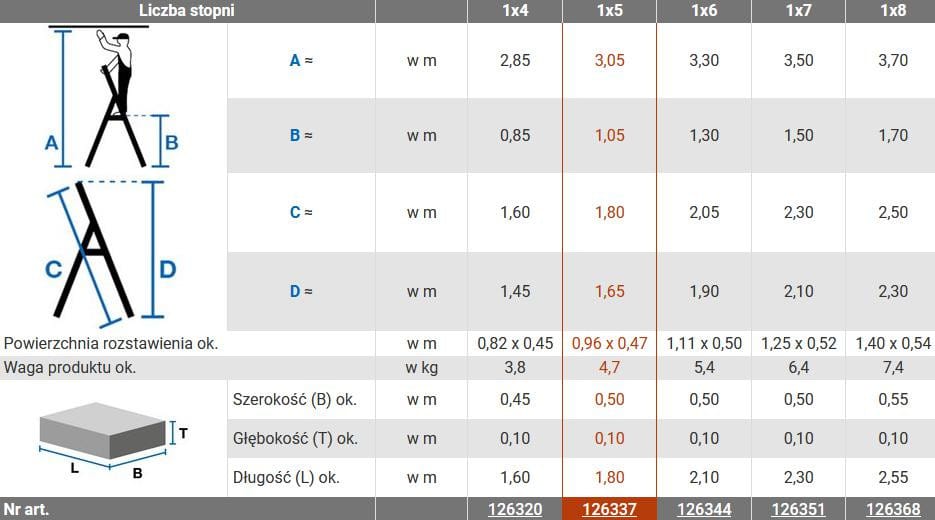 Drabina aluminiowa jednostronna Krause SAFETY 1x5 z półką 126337