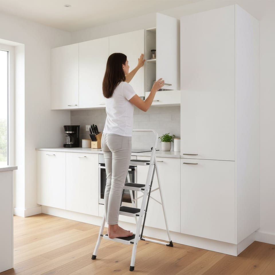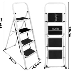 Drabinka domowa składana STIGE 4 stopnieModel: Stige | Liczba stopni: 4⭐️ Składana konstrukcja⭐️ Lekka i poręczna⭐️ Udźwig 150 kg⭐️ Antypoślizgowe stopnie i nakładki⭐️ Zakup od producenta✍️ Specyfikacja:Liczba stopni: 4Materiał: metalKolor: biały z czarnymi dodatkamiPowierzchnia stopni: antypoślizgowaNóżki: z nakładkami antypoślizgowymiUdźwig: 150 kgMarka: Gockowiak✍️ Wymiary:Wysokość: 127 cmSzerokość: 46,5 cmGłębokość: 86 cmWymiary po złożeniu: 136 × 46,5 × 6 cmWymiary stopnia: 30 × 20 cmWymiary części antypoślizgowej stopnia: 27,5 × 17,5 cmInformacje dodatkowePrzedstawione kolory należy traktować poglądowo - mogą odbiegać od rzeczywistych ze względu na różne ustawienia monitorów oraz proces obróbki zdjęć. Rzeczywiste wymiary mogą się różnić od podanych wyżej. Tolerancja błędów może wynosić +/- 5%.Marka:GockowiakKod EAN:5904512610090Kolor:biało-czarnyWysokość: 127 cmSzerokość: 46,5 cmGłębokość: 86 cm