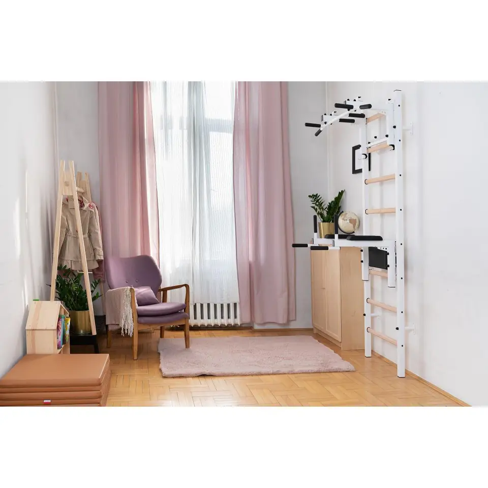 DRABINKA GIMNASTYCZNA DREWNIANO METALOWA Z DRĄŻKIEM I AKCESORIAMI BENCHK 232W