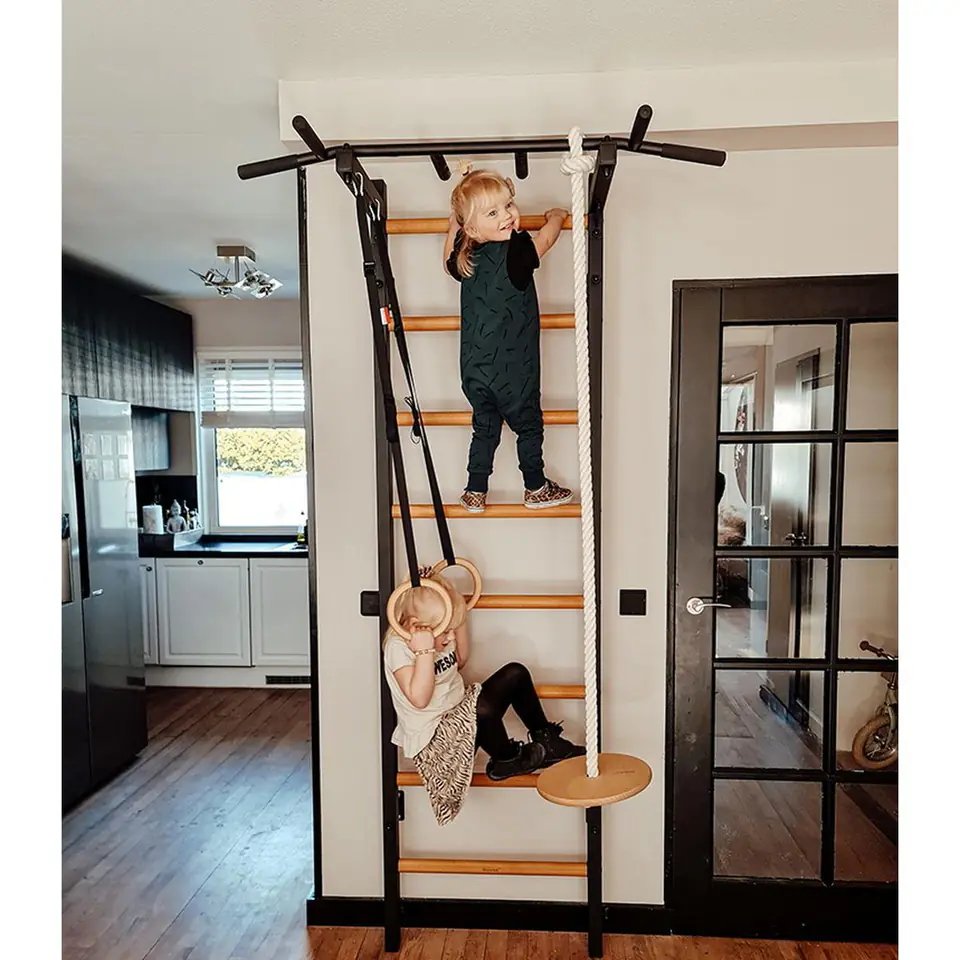 DRABINKA GIMNASTYCZNA DREWNIANO METALOWA Z DREWNIANYM DRĄŻKIEM I AKCESORIAMI BENCHK 221B A076