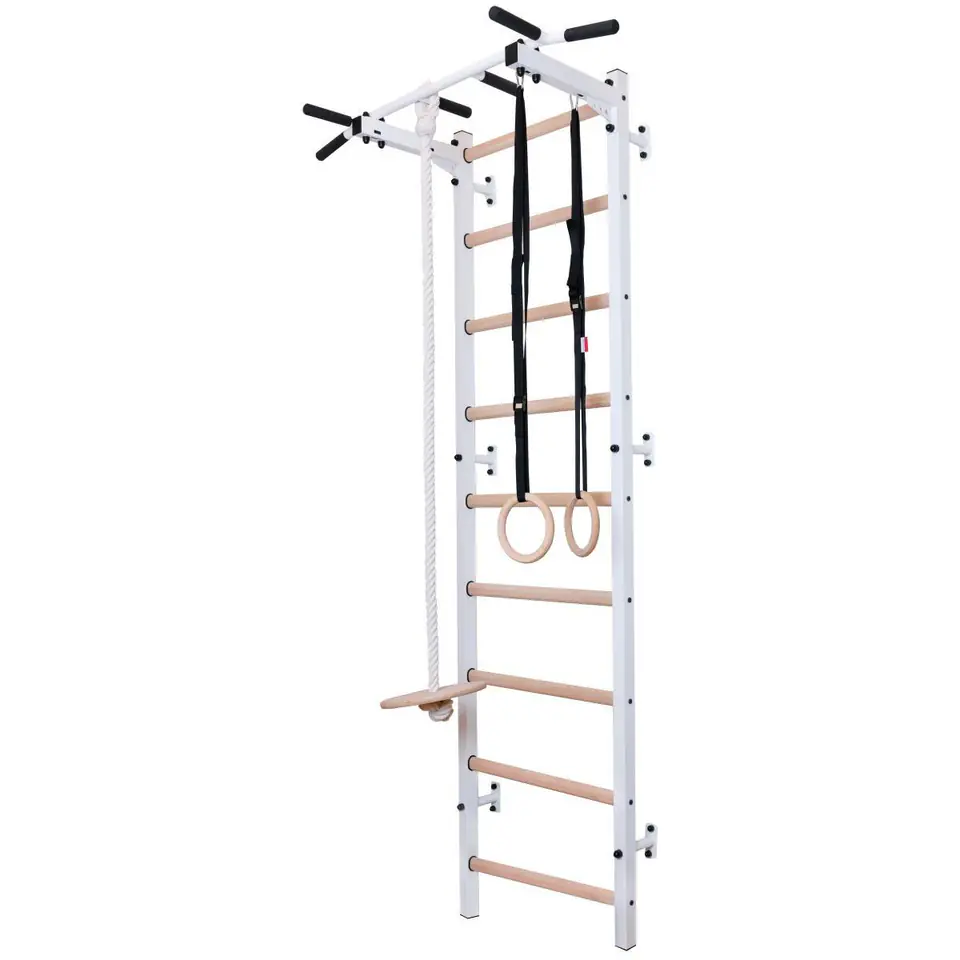 DRABINKA GIMNASTYCZNA DREWNIANO METALOWA Z METALOWYM DRĄŻKIEM I AKCESORIAMI DLA DZIECI BENCHK 721W A076