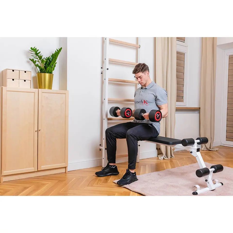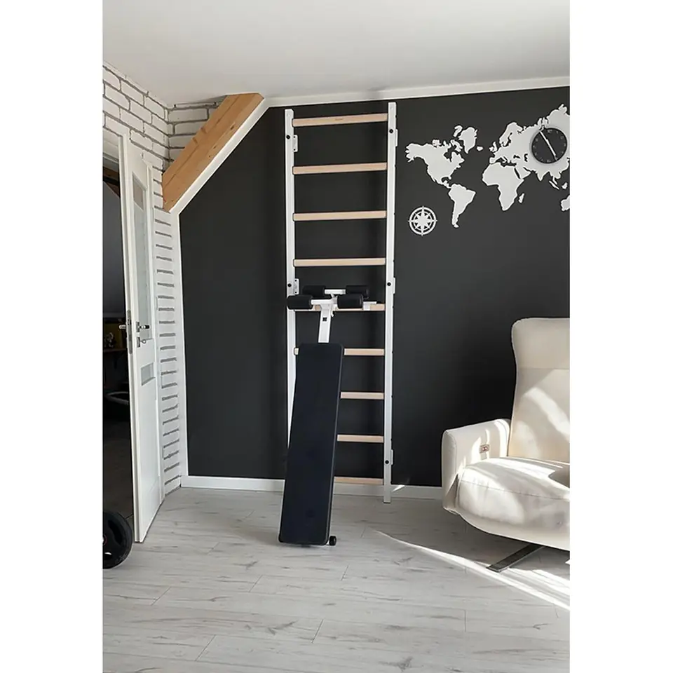 DRABINKA GIMNASTYCZNA Z DRĄŻKIEM PORĘCZĄ DO ĆWICZEŃ I ŁAWECZKĄ BENCHK 723W