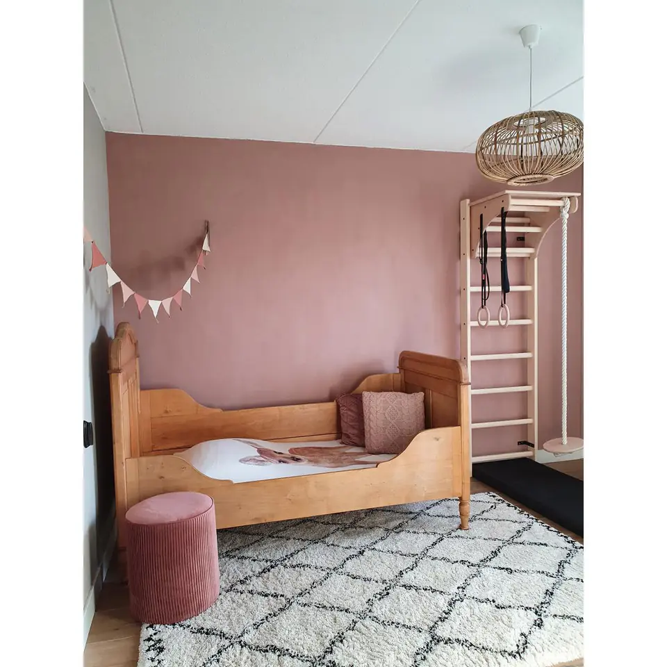 Drabinka gimnastyczna wyprodukowana w Polsce zgodnie ogólnoeuropejskimi normami PN-EN 12346:2001, PN-EN 913:2019-03 dla sprzętu gimnastycznego.Wielofunkcyjna drabinka BenchK 113 z akcesoriami gimnastycznymi i dodatkową nakładką-biurkiem świetnie dopełni nawet niewielki dziecięcy pokój. Mogą z niej korzystać nie tylko dzieci, ale i dorośli, dzięki maksymalnej wadze osoby ćwiczącej do 120kg oraz regulowanej wysokości drążka, która pozwala na dopasowanie wysokości biurka do wysokości użytkownika. BenchK 113 to praktyczny i stylowy mebel sportowy.Wykonana z litego drewna bukowego i ręcznie olejowana, drabinka gimnastyczna dla dzieci BenchK 113 ma szansę stać się faworytem dzieci, a rodzicom zapewnić regularny, efektywny trening w domu.Nakładkę-biurko można łatwo zdjąć i przechowywać w górnej części drabinki, na drążku, w celu zaoszczędzenia miejsca.Zawiera zestaw do montażu (oprócz kołków i wkrętów, gdyż ich rodzaj należy dobrać w zależności od rodzaju ściany do której będzie mocowana).Decyzja i odpowiedzialność o sposobie montażu drabinki leży po stronie klienta. Montaż do ściany nie jest możliwy do ściany gips-karton. Obligatoryjna grubość ściany w przypadku montażu przy użyciu kołków rozporowych Fischer dostępnych w ofercie BenchK wynosi 12 cm. W pozostałych przypadkach jest to tylko rekomendacja.Istnieje możliwość polecenia firmy montażowej na terenie całej Polski.Wzór zastrzeżony prawem z rejestracji wzoru wspólnotowego nr 008135586-0008, 008135586-0001, 008135586-0009, 008135586-0003, 008135586-0002, 008135586-0017.Zarówno kolory poszczególnych drewnianych elementów jak i kolory na zdjęciach mogą nieco odbiegać od tych w rzeczywistości ze względu na naturę drewna. Niemniej jednak dokładamy szczególnych starań, aby różnice te były jak najmniejsze.