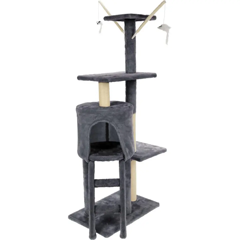 - słupki zostały dodatkowo pokryte sznurem sizalowym, co zapewni miejsce do ostrzenia pazurkówpokryty miłym w dotyku i wytrzymałym pluszowym materiałem wyposażony w platformy obserwacyjne zapewni kotu poczucie kontroli i miejsce do obserwacjidwie pluszowe myszki na sznurkach zagwarantują dobrą zabawę domek świetnie nadaje się jako kryjówka lub miejsce do odpoczynkubezpieczeństwo zapewni stabilna konstrukcja i szeroki spód