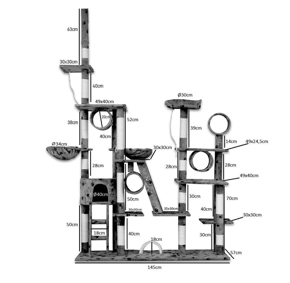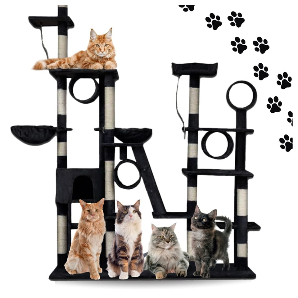 Mamy rozwiązanie! Nasz drapak XXL o imponującej wysokości 255 cm to idealne centrum aktywności, które zaspokoi potrzeby każdego kota. Dzięki rozbudowanej konstrukcji z 9 poziomami, licznym legowiskom, hamakom i tubom, Twój futrzany przyjaciel zyska własną, nieograniczoną przestrzeń do zabawy i relaksu. To idealne rozwiązanie dla dużych kotów, aktywnych pupili oraz domów z wieloma czworonogami.