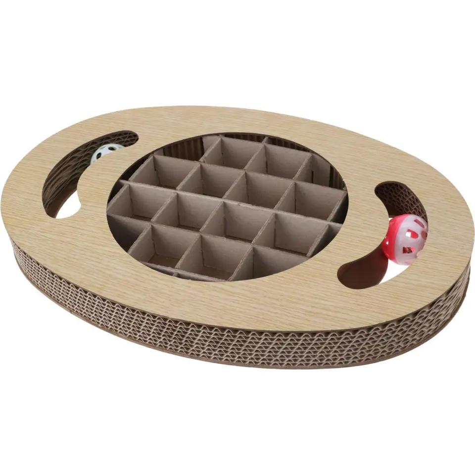 Wszystkie koty uwielbiają buszowanie, czy to w ogrodzie, czy w mieszkaniu. Napotykają liczne bodźce z otoczenia i ich inteligencja jest wówczas stymulowana na wielu poziomach. Zbyt mała stymulacja, wpływa negatywnie na ogólne samopoczucie wszystkich czworonogów. Z pomocą interaktywnej zabawki – drapaka z dzwoniącymi piłeczkami zadbasz urozmaicenie aktywności, przypomni Twojemu pupilowi zabawę w polowanie.