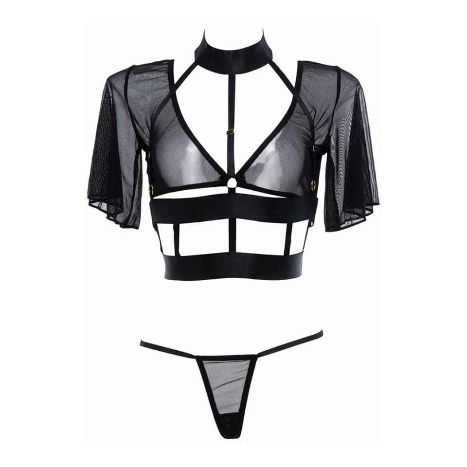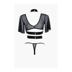 Poznaj komplet Dreamgirl Dreamer Allure – wyjątkowy zestaw, ktory łączy nowoczesny styl z komfortem noszenia. Model składa się z transparentnego topu z długim rękawem oraz dopasowanych stringow, stworzonych z wysokogatunkowej, przewiewnej siateczki. Ozdobne, szerokie pasy nadają całości wyrazisty, modny charakter, a regulowane zapięcie z tyłu pozwala na indywidualne dopasowanie do sylwetki.