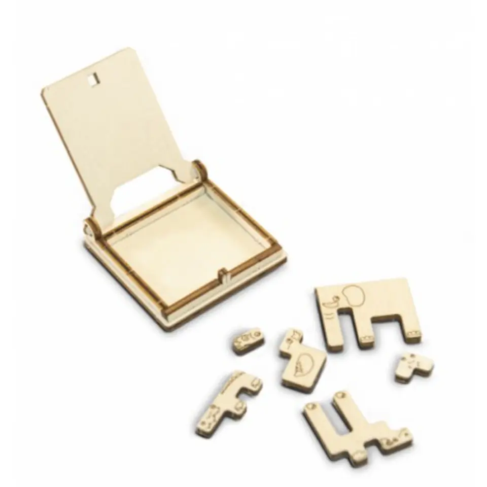 Drewniana gra podróżna 3D Wooden.City - Układanka Zwierzęta - Tangram Drewniane modele od Wooden.City to nowoczesna forma Puzzli 3D do samodzielnego montażu bez użycia kleju oraz dodatkowych narzędzi. Drewniane mini gry podróżne umilą dłużący się czas, a dzięki niewielkiemu rozmiarowi można schować je dosłownie wszędzie! Charakterystyka materiał - ekologiczna sklejka brzozowa elementy wykonane z dbałością o szczegóły model przedstawia podróżną grę logiczną polegającą na "upakowaniu" zwierzątek w kwardacie po złożeniu w grę można grać np. podczas podróży złożenie nie wymaga użycia dodatkowych narzędzi oraz kleju rozwija wyobraźnię przestrzenną i zdolności manualne uczy cierpliwości oraz precyzji świetnie sprawdzi się jako prezent również dla dorosłych W zestawie opakowanie (drewniana skrzyneczka) 21 elementów różnej wielkości Wymiary złożonego modelu długość: 6,0 cm szerokość: 6,0 cm wysokość: 1,2 cm waga: ok. 0,025 kg Wymiary opakowania długość: 6,0 cm szerokość: 6,0 cm wysokość: 1,2 cm Model przeznaczony dla dzieci powyżej 14 roku życia. WG.209