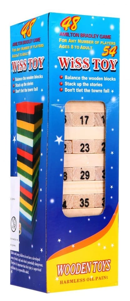1. Wariant pierwszy: zadaniem graczy jest naprzemienne wyciąganie po jednym klocku z dowolnego piętra wieży, który umieszczają następnie na szczycie wieży. W tym wariancie, nie używamy kostek do gry.2. Wariant drugi: rzucając 4 kostki sumujemy liczby i wyciągamy klocek z liczbą jaką wyrzuciliśmy za pomocą kostek. Właściwy klocek umieszczamy następnie na szczycie wieży.Przy każdej operacji należy uważać, by nie zniszczyć całej konstrukcji.Pamiętajmy również, że przy każdym wyjętym i przemieszczonym klocku zadanie staje się coraz trudniejsze, a gra coraz bardziej emocjonująca.Wieża może jednak utrzymać równowagę nawet przy dwukrotnym zwiększeniu swojej wysokości.Ilość graczy: dowolna. | |