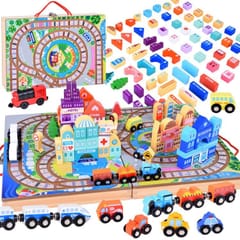 Odkryj fascynujący świat kolejowych podróży z zestawem drewnianych klocków, który przeniesie Twoje dziecko w magiczny świat miasta pełnego przygód!Zestaw zawiera 89 elementów, w tym torowisko, pociąg na baterie oraz różnorodne klocki, które pozwolą na tworzenie unikalnych budynków i atrakcji.