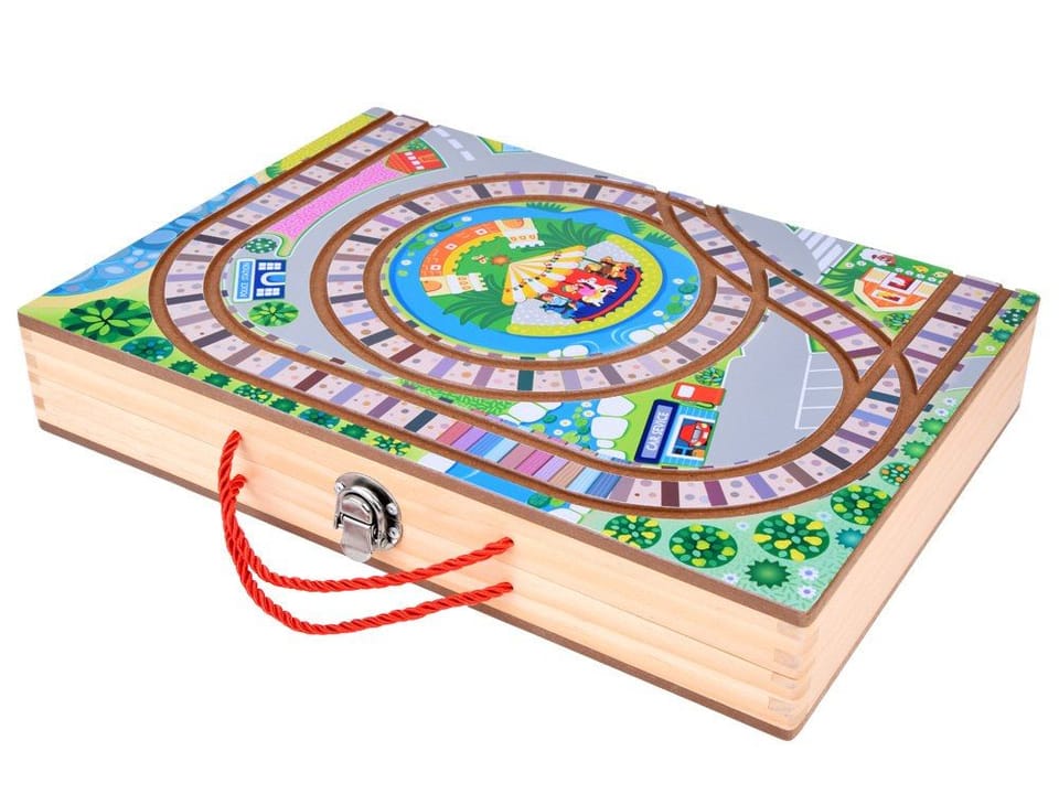 - Zestaw klocków miasto: Zawiera różne drewniane klocki, które można łączyć i układać w dowolne konfiguracje, umożliwiając budowę miasta z domami, sklepami i innymi budynkami w uroczych pastelowych kolorach.- Torowisko: Sieć torów otacza miasto, co pozwala dziecku planować trasy i podróże pociągu. Dzieci mogą tworzyć swoje własne opowieści, przemieszczając pociąg po mieście.- Pociąg na baterie: Pociąg zasilany baterią (1,5 V AA) porusza się po torach, w trakcie jazdy świeci światłem, dostarczając towary i przewożąc pasażerów. To fascynująca zabawa, która rozweseli każde dziecko.- Drewniana walizka: Zestaw jest zapakowany w solidną drewnianą walizkę, która nie tylko pełni funkcję bazy miasta, ale także umożliwia łatwe przechowywanie i transportowanie klocków i akcesoriów.- Estetyczne wykonanie: Klocki i akcesoria są wykonane z naturalnego drewna i pomalowane w urocze pastelowe , atrakcyjne kolory. To ekologiczna alternatywa dla plastikowych zabawek, zapewniająca długotrwałą zabawę.- Idealny prezent: Zestaw drewnianych klocków miasto z torami i pociągiem na baterie to doskonały prezent dla małych miłośników kolejek i kreatywnej zabawy. Zachęcamy do odkrywania świata kolejowych przygód i nieograniczonych możliwości budowania!Pojazdy w zestawie: