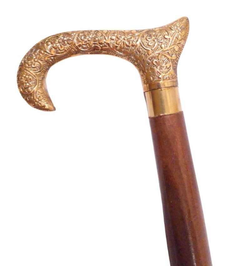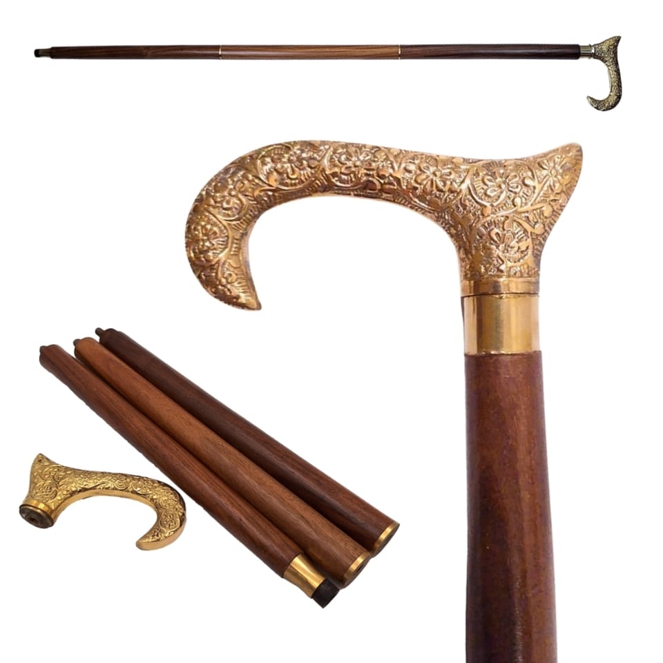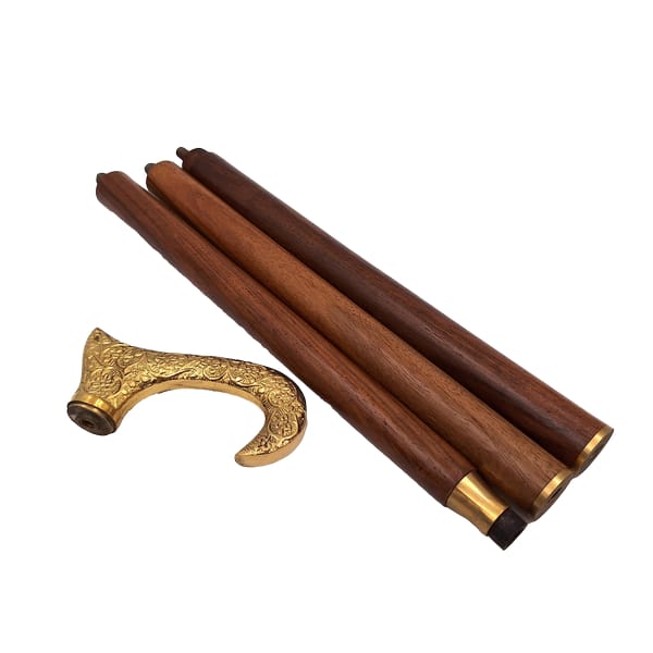 Drewniana Laska do chodzenia ze złotą rączką - Składana - DNU-012A Informacje o produkcie: Długość: 91,5 cm Materiał: drewniana laska, mosiężny uchwyt Laska składana Elegancka, złota rączka wykonana z mosiądzu Kolor: brązowy, złoty