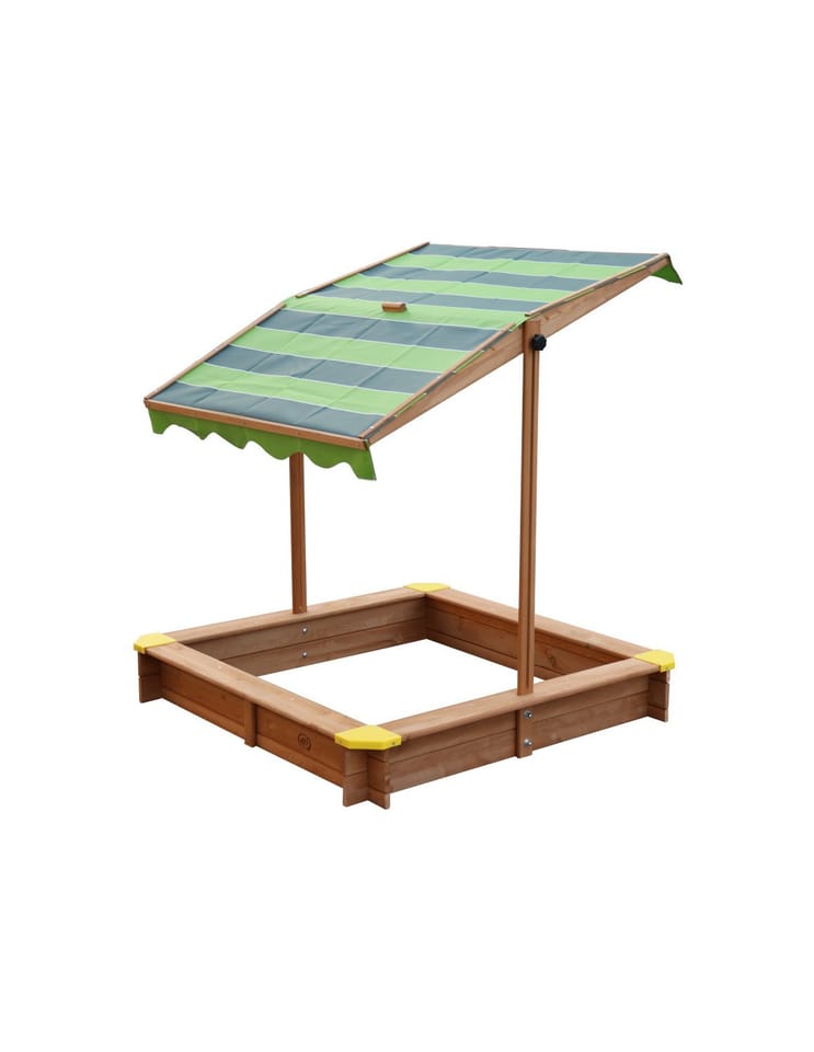 - - piaskownica wyposażona jest w materiałowy daszek, który posiada możliwość regulacji wysokości i kąta nachylenia