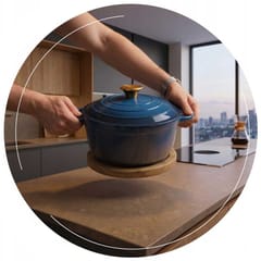 Kompatybilność z żeliwem: Podkładka jest precyzyjnie zaprojektowana, aby idealnie pasować do wszystkich naczyń żeliwnych.