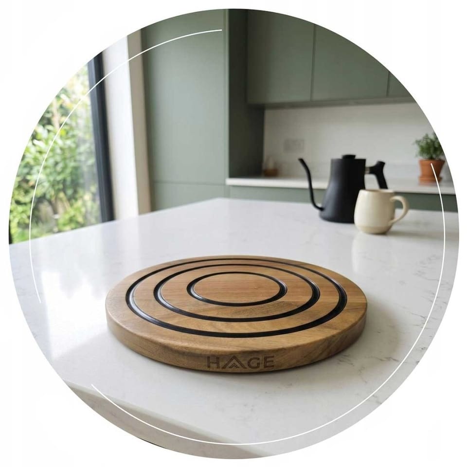 Elegancka drewniana podkładka magnetyczna skutecznie chroni blaty przed wysoką temperaturą i zarysowaniami, idealnie wpasowując się w każde wnętrze.