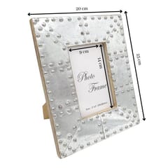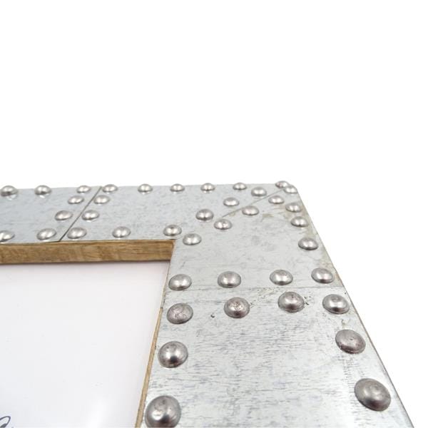 Ramka wykonana z drewna mangowego, inkrustowana metalem. Zdobienia metalowe. Format zdjęcia 15x10cm. Wymiary zewnętrzne: 25 x 20 cm. Wymiary wewnętrzne: 14 x 9 cm.