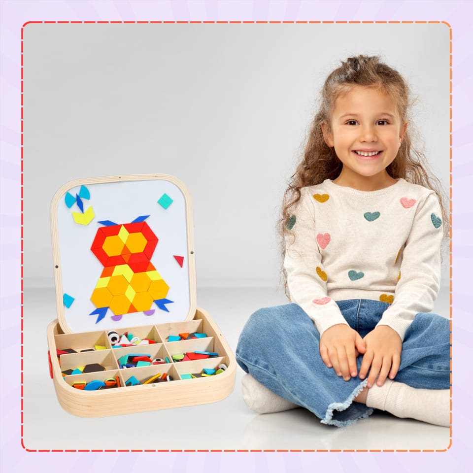 Drewniana Skrzynka z Magnetyczną Mozaiką – Kreatywna Zabawa i Nauka dla Dzieci✨