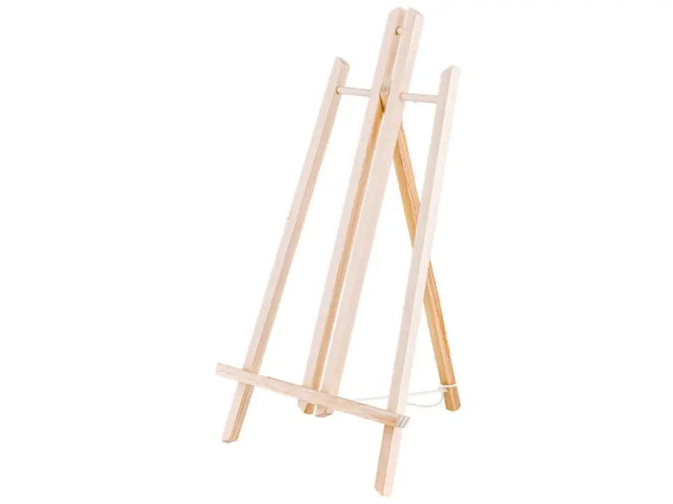 Praktyczna, funkcjonalna i solidna sztaluga stołowa o wysokości ok. 46,5cm. Wykonana z drewna poddanego obróbce, którego powierzchnia jest oszlifowana i gładka. Półka dolna dodatkowo jest nafrezowana aby obraz nie zsunął się ze sztalugi.