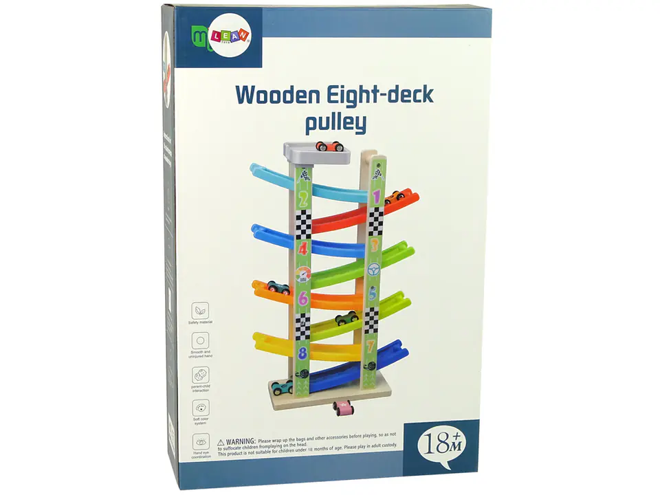 Zjeżdżalnia jest różnokolorowa i do tego posiada 8 pięter, każdy z nich oznaczony numerkami. Kilka autek naraz i wyścig! Maluch nauczy się jak autka poruszają się po pochyłych powierzchniach.