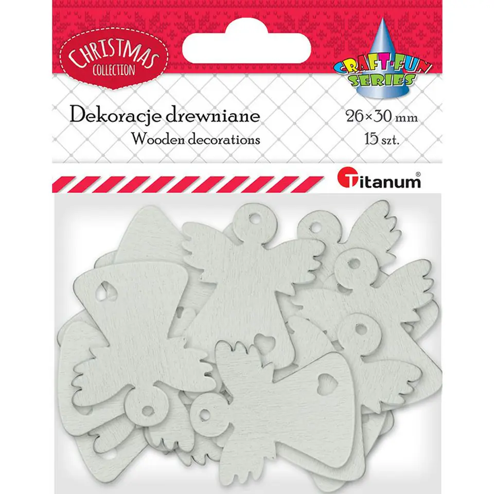 Drewniane anioły ażurowe 25x29mm białe 15szt. 417639 TITANUM