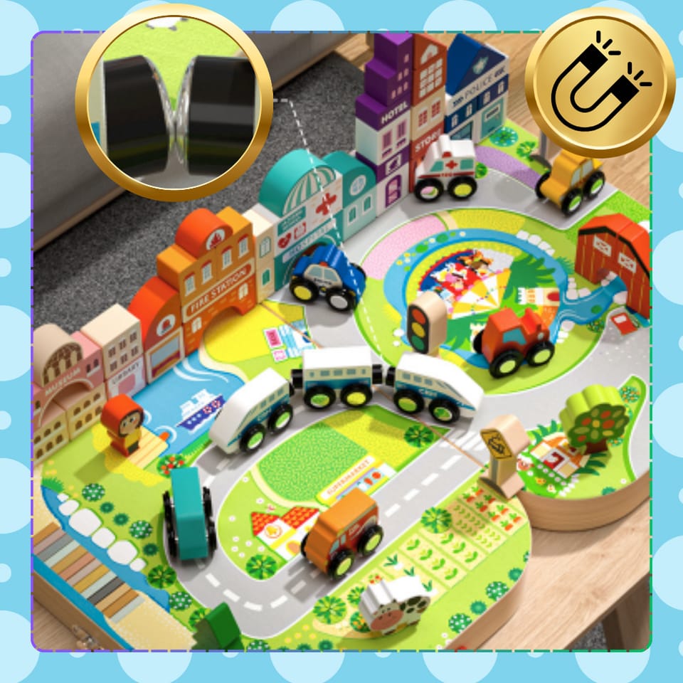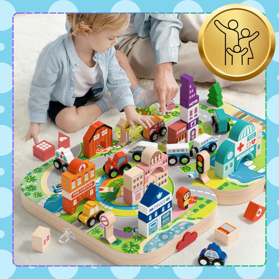 ✅Zabawa edukacyjna: Dziecko uczy się planowania przestrzennego, tworzenia i rozwiązywania sytuacji w interaktywnym miasteczku.