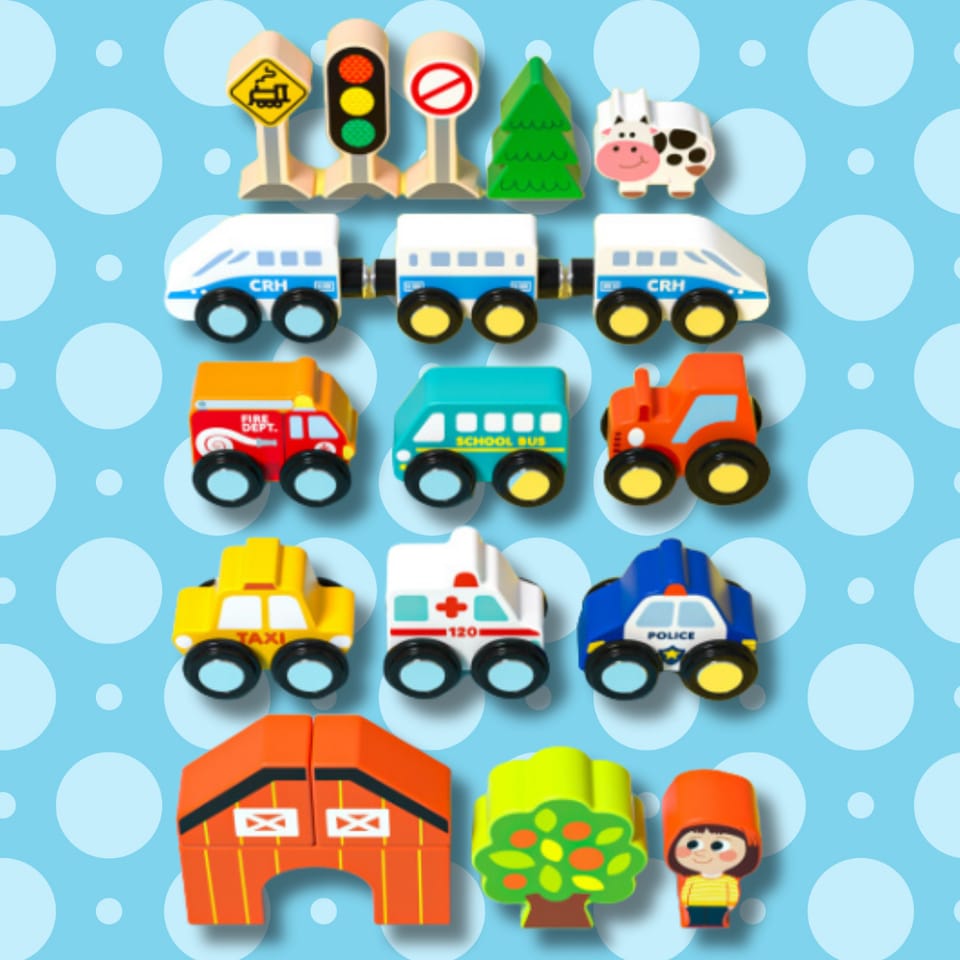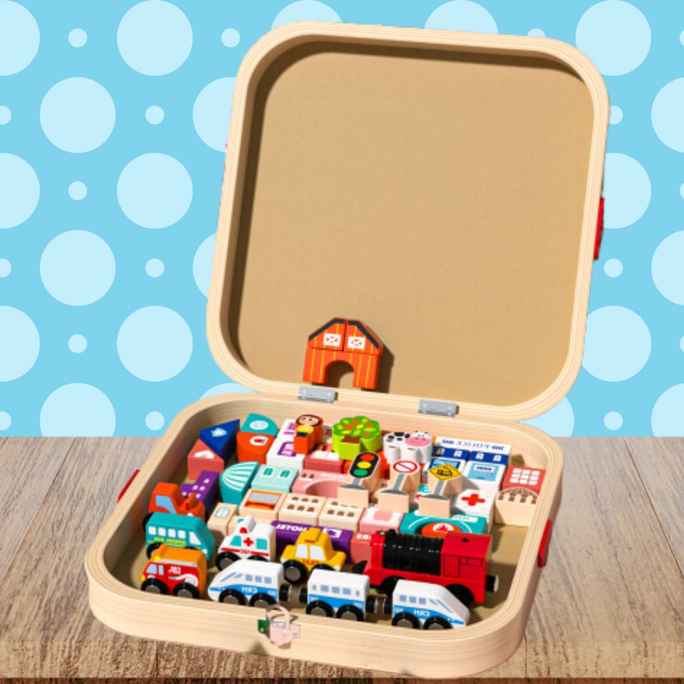 ⭐DREWNIANE KLOCKI EDUKACYJNE MIASTO LOKOMOTYWA ZESTAW SKRZYNKA DLA DZIECI