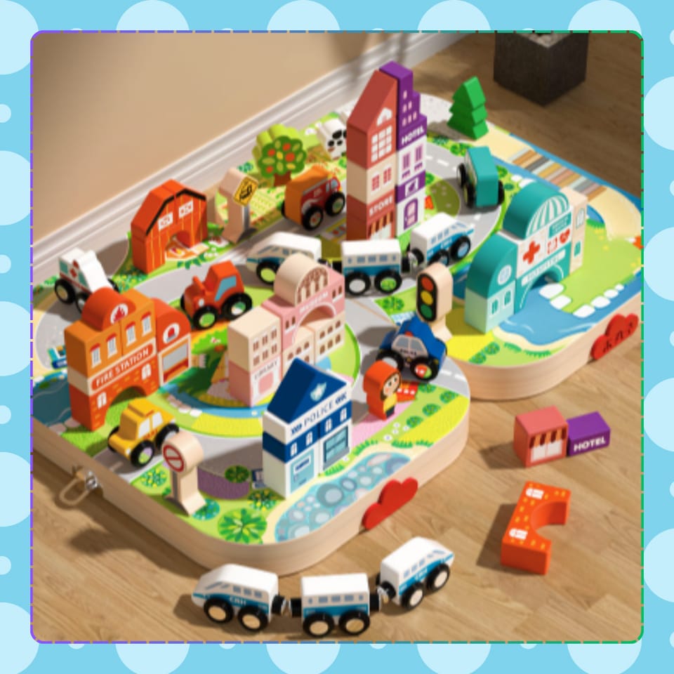 ⭐️Pozwól swojemu dziecku przenieść się do magicznego świata zabawy z naszą Drewnianą Skrzynką, która po rozłożeniu zamienia się w pełne detali miasteczko! To nie tylko zabawka, ale prawdziwe centrum kreatywnej rozrywki, która angażuje na wiele godzin. Miasteczko, które dziecko może zbudować z tej sprytnej walizki, oferuje nieskończone możliwości tworzenia historii i przeżywania ekscytujących przygód.