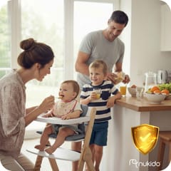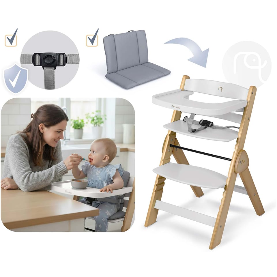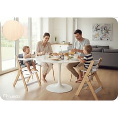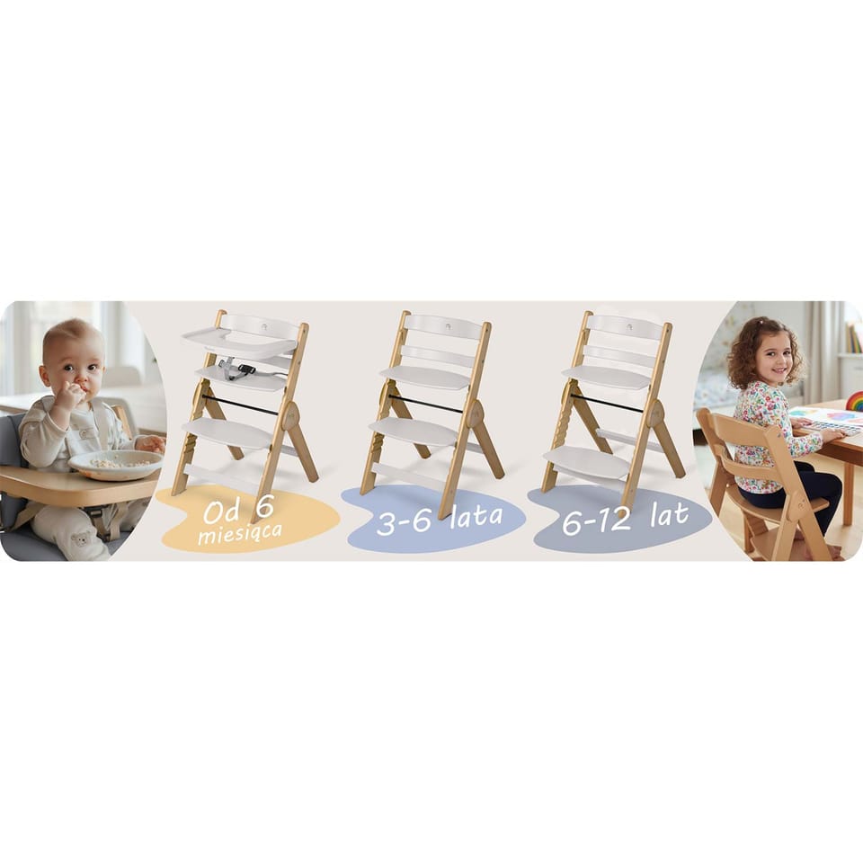 Dzięki specjalnemu zestawowi z pasami bezpieczeństwa i wygodną poduszką staje się bezpiecznym i komfortowym pierwszym krzesełkiem dla Twojego maluszka. Idealne do pierwszych posiłków i wspólnych chwil przy stole.